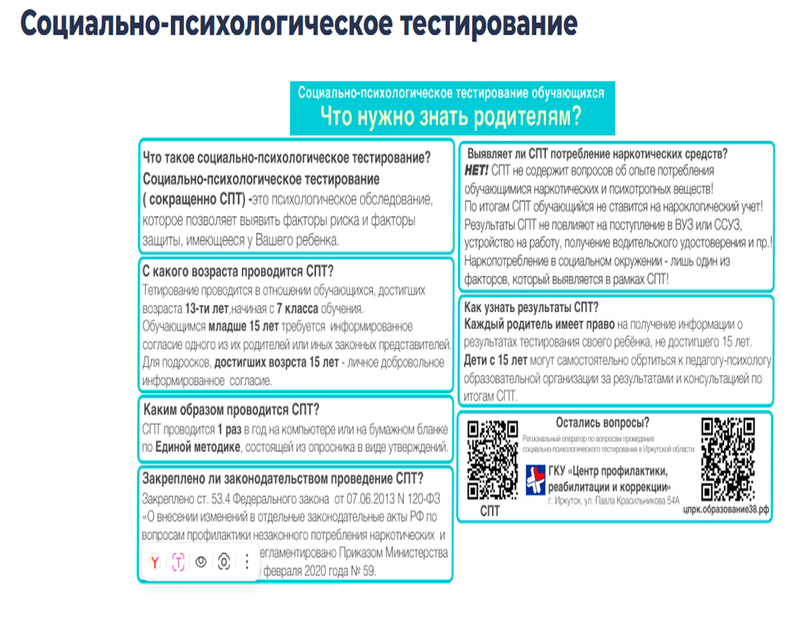- Информационное письмо Министерства Просвещения РФ от 02.09.2022 № 07-6001 Информация по вопросам организации и проведения СПТ обучающихся, направленного на раннее выявление незаконного потребления наркотических средств и психотропных веществ, в 2022/23 учебном году