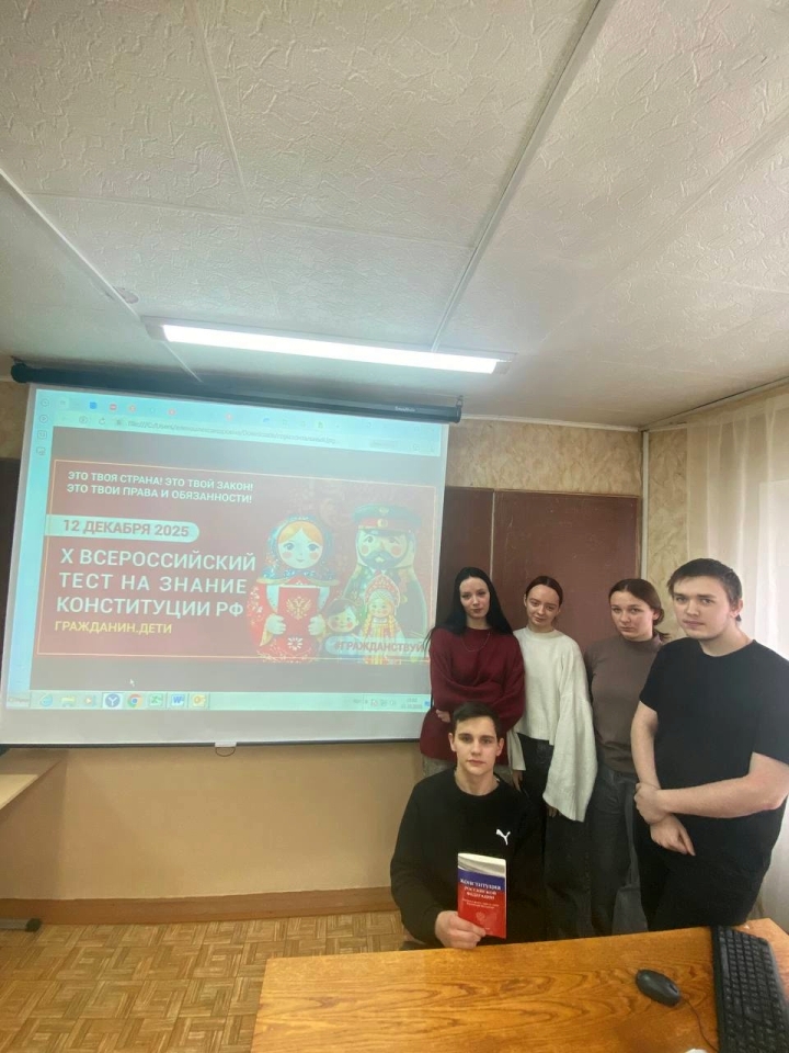 Группы ТЭС-25, Э-25, МА-25, ПК-23 проверили свои знания в Х Всероссийском тесте на знание Конституции РФ от проекта «Гражданин.Дети». Традиция участвовать в этой акции у техникума уже давняя — и мы каждый год с радостью её поддерживаем! Это отличный повод освежить в памяти главный закон страны.