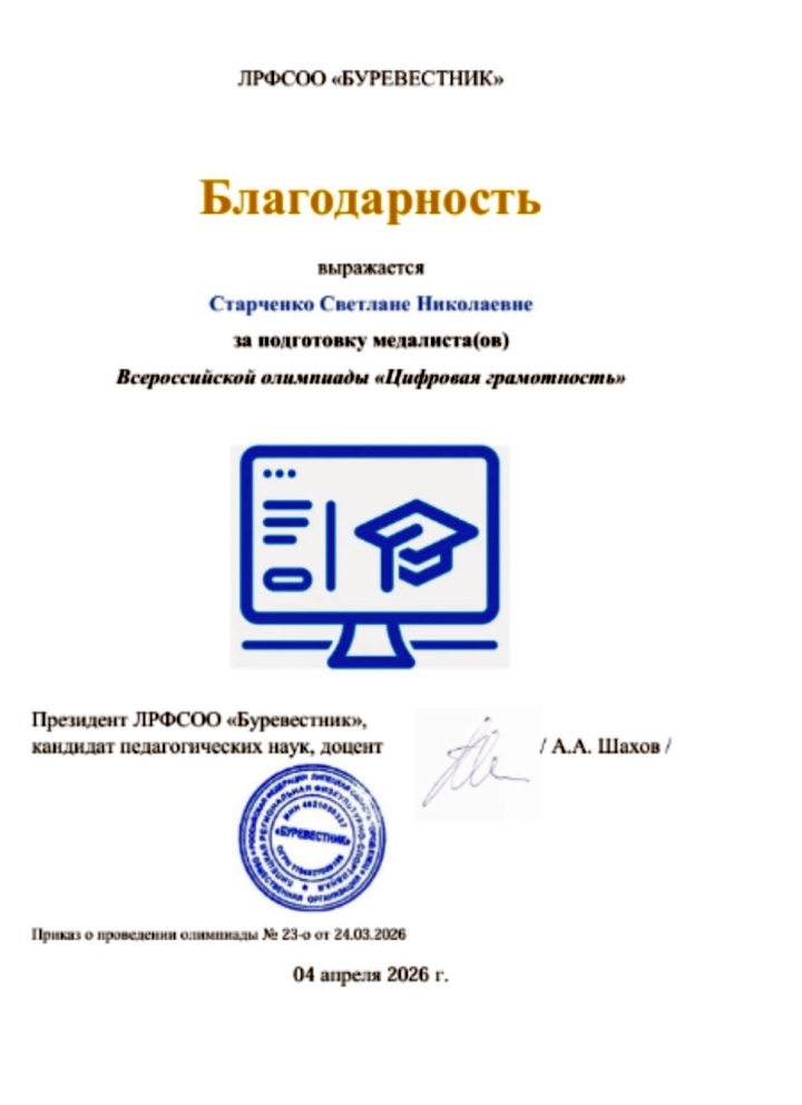 Особая благодарность преподавателю Старченко Светлане Николаевне за подготовку студентов и высокий уровень их знаний. 🙌