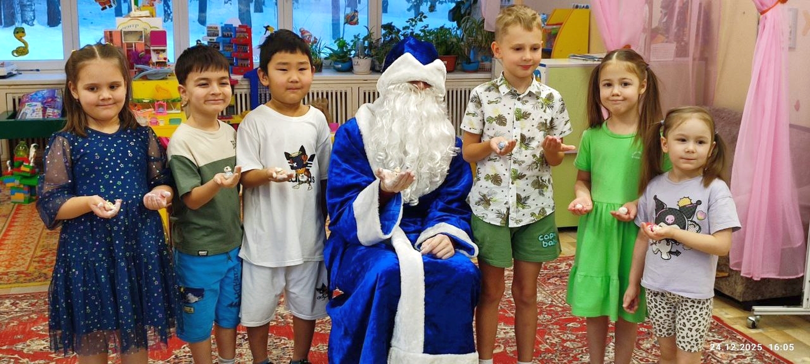 Но самым волшебным стало общее творчество! Вместе с Дедом Морозом малыши смастерили своими руками чудесные елочные игрушки из глины. Были и звёздочки, и забавные снеговики, и елочные новогодние шары! Каждая игрушка получилась уникальной, наполненной детской фантазией и теплом.