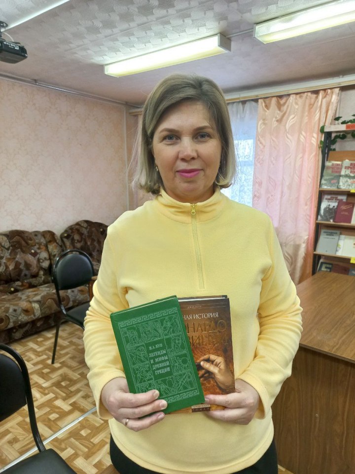 Преподаватель физкультуры Мурашевич Елена Юрьевна не осталась в стороне, принесла в дар библиотеке две книги: "Легенды и мифы древней Греции", "Тайная история Леонардо да Винчи".