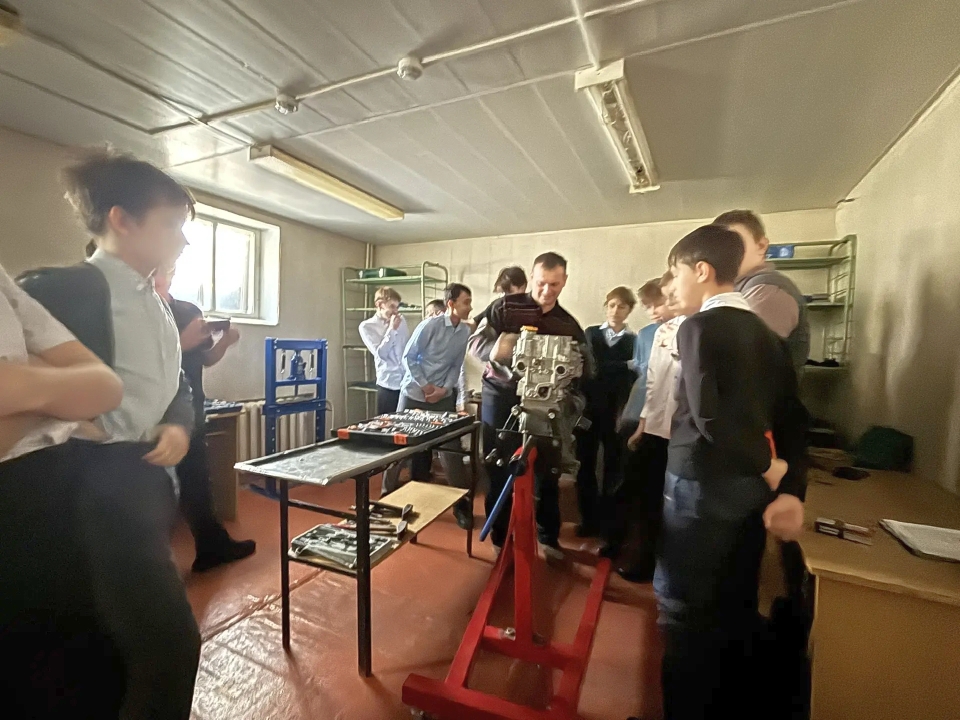 Будущие автомеханики узнали о тонкостях профессии, правилах безопасности в слесарной мастерской и познакомились с основными операциями при работе с коробкой перемены передач (КПП) и двигателем ВАЗ 2108.