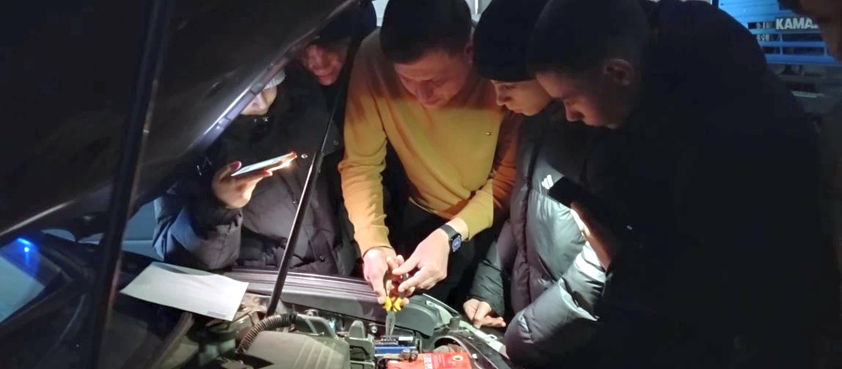 Участники пробы погрузились в диагностику и устранение неисправностей в осветительной системе автомобиля — полезный навык для любого водителя и будущего специалиста.