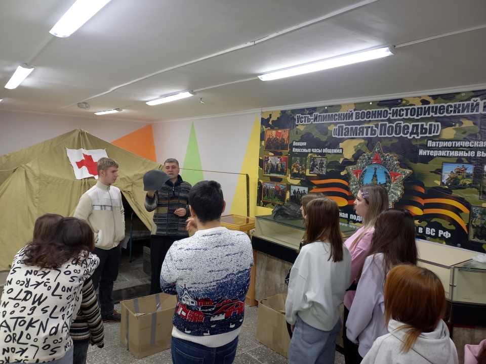 На базе техникума ГБПОУ "УИ ТЛТУ" Преподаватели и студенты провели мероприятие в помещении выставочного зала связанного с героическим прошлым наших соотечественников в период ВОВ. Студентам было рассказано о разных родах войск, наглядно показана форма, снаряжение и макет орудия противотанковая пушка 45 мм. А так же знакомство с военной медициной и показаны копии наград Героев Отечества в том числе и орден "Георгиевский крест" всех степеней.