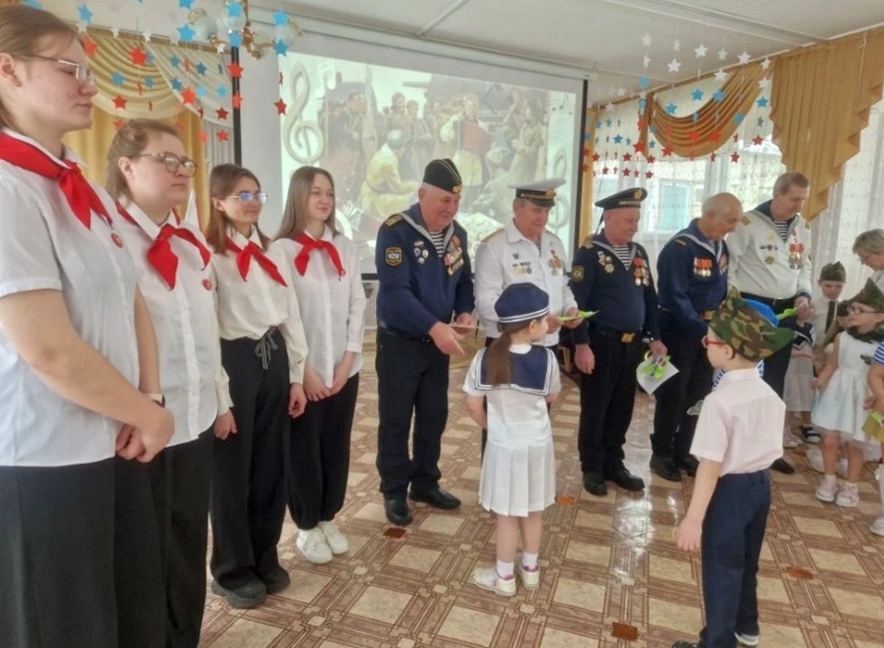 Вместе с дошколятами и военными-моряками из клуба «Румб» мы вспомнили песни о солдатах: детские, современные армейские и, конечно, бессмертные композиции времен Великой Отечественной войны. Рассказали малышам об истории создания легендарных произведений — «Случайный вальс», «Темная ночь», «В землянке». А затем трогательно исполнили песню «Родина».