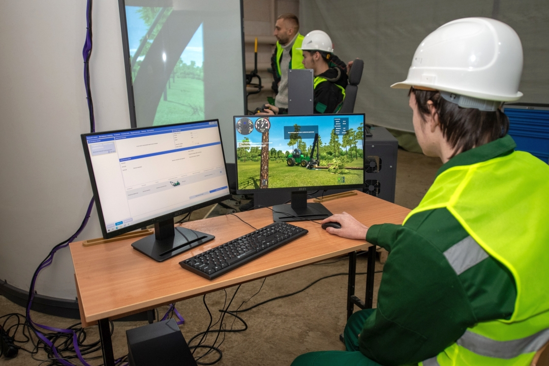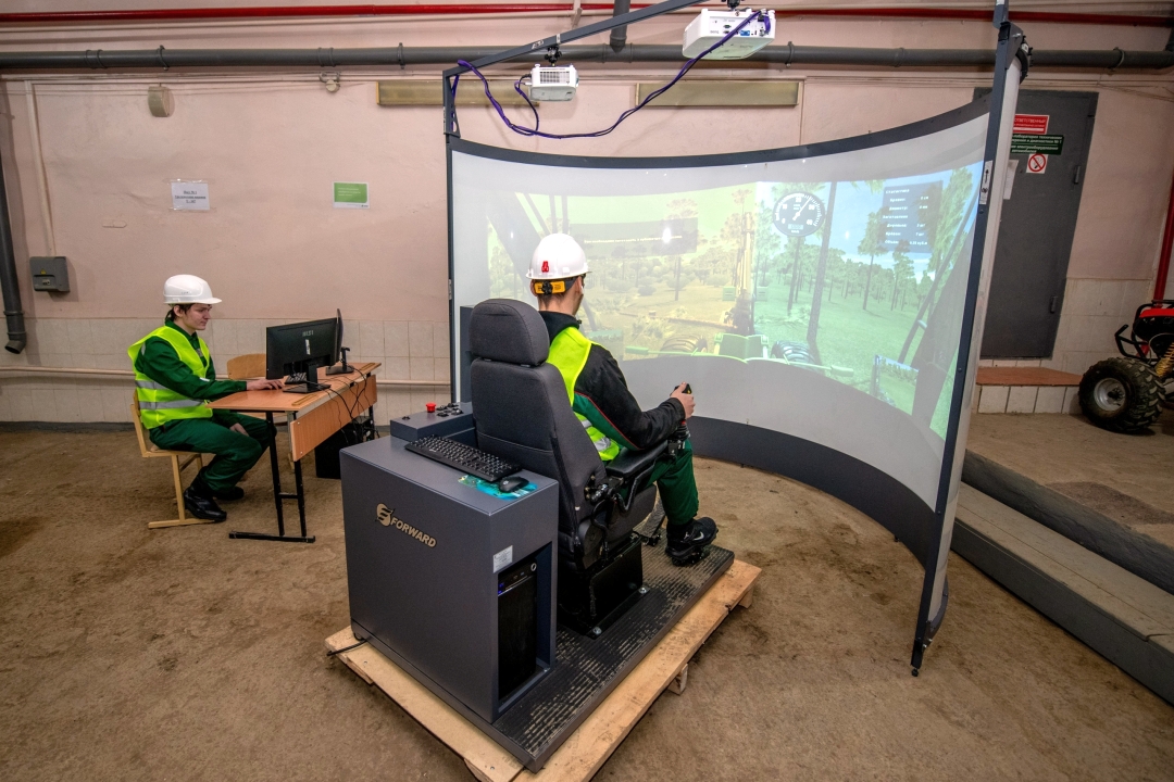 Студенты смогут отрабатывать все ключевые операции: валку, раскряжёвку и трелёвку леса в виртуальной среде, максимально приближенной к реальности. Тренажёр позволяет моделировать разные погодные условия и время суток. После курса обучения на этом же оборудовании планируется проводить демонстрационный экзамен.