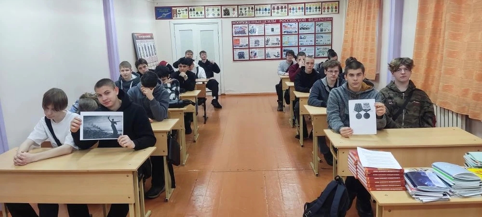 Преподавателем – организатором Алифиренко Н.П. был подготовлен печатный материал для доведения информации, хроника событий Сталинградской битвы и как выглядела медаль «за оборону Сталинграда».