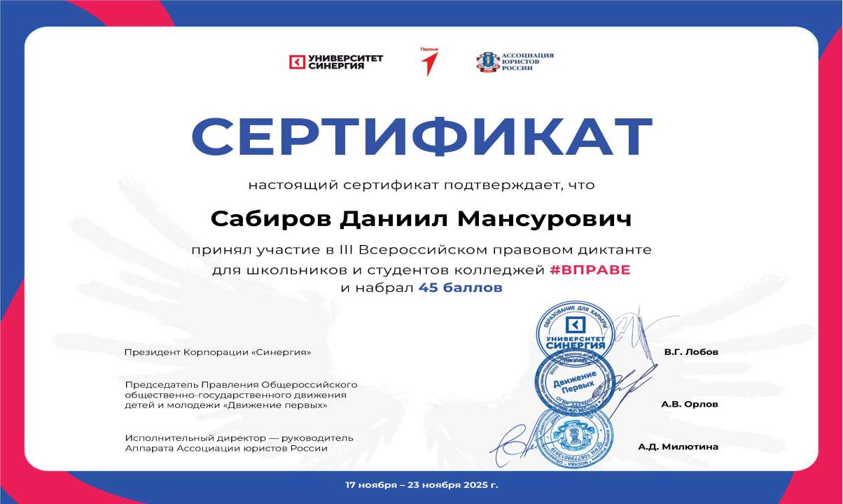 23 ноября 2025 года студенты техникума приняли участие во Всероссийском правовом Диктанте #ВПРАВЕ.